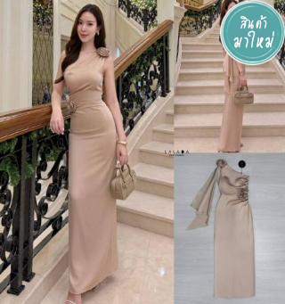 เดรสออกงานเรียบหรู แกนกุดช่วงไหล่แต่งระบาย