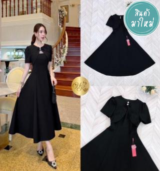 เดรสกระโปรงยาว แขนสั้น ผ้ายืดเนื้ออย่างดี