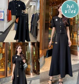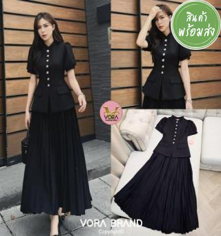 Set เสื้อแขนพอง คอตั้งติดกระดุมเรียงด้านหน้า