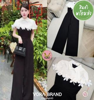 Jumpsuit ขายาว ทรงสวย คอปก แต่งคลุมช่วงไหล่