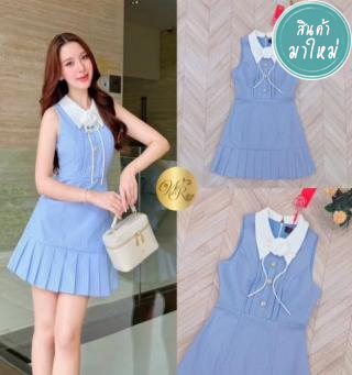 Dress เดรสแขนกุด คอปก อกติดกระดุม ซิปหลัง มีเข็มขัดให้ 1เส้น