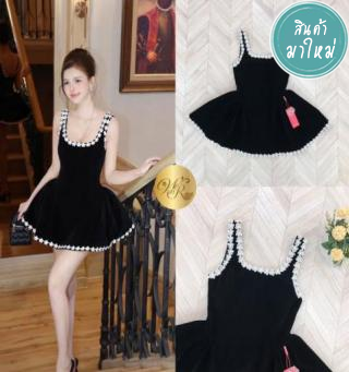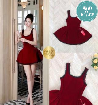 Dress เดรสสายเดี่ยว แต่งขอบด้วยลูกไม้ เนื้อผ้ากำมะหยี่อย่างดี