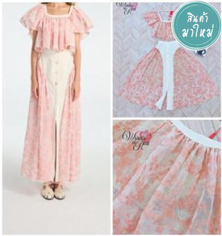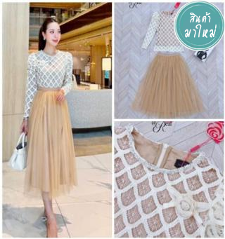 Set เสื้อลูกไม้แขนยาวกับกระโปรงยาว มีเข็มกัดดอกไม้ให้ 1 ดอก