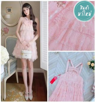 เดรสสายเดี่ยว อกเย็บโชว์ เนื้อผ้าลูกไม้นุ่มนิ่มปักเลื่อมวิ้งๆ เย็บระบายเป็นชั้นๆทั้งตัว งานซิปข้าง