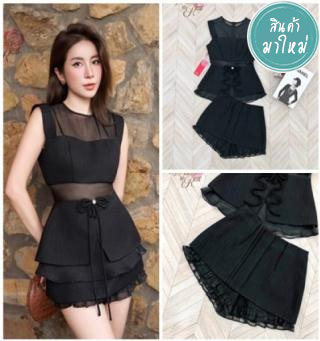 Set เสื้อแขนกุดกับกระโปรงด้านในกางเกง เนื้อผ้ามีดิ้นเงินในตัว