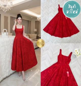 เดรสปาดไหล่ผ้าทวิตสีแดง เว้าอกรูปหัวใจเพชรวิ้งๆ น่ารักมากๆค่า