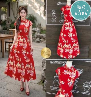 เดรสกี่เพ้าหมวยหวานลายน่ารักมากกตัดโทนสีแดงกี่เพ้าแมทช์กันได้น่ารักสุดๆ