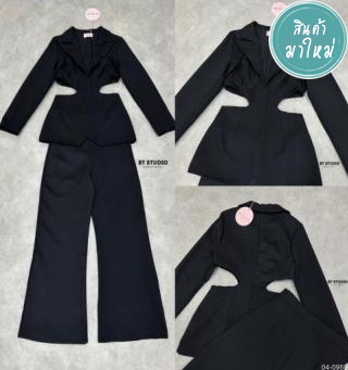 Set2ชิ้น เสื้อทรงสูทแขนยาวคอปกใหญ่สีดำ แต่งกระดุมด้านหน้า