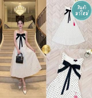 เดรสแขนกุดตัวยาวสวยทรงดี เก๋ไก๋ด้วยช่วงอกแต่งโบโดดเด่น