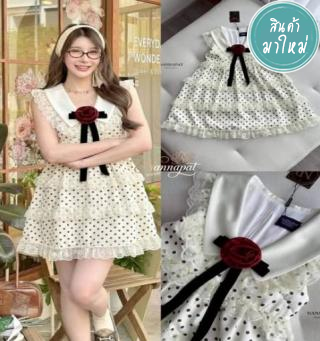 เดรสลายจุดแต่งลูกไม้ ลุควินเทจที่สวยสะกดทุกสายตา"