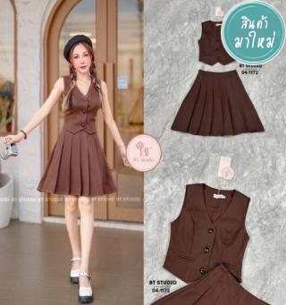 เซท 2 ชิ้น เสื้อเบเซอร์แขนกุดกระดุมหน้าปลายชายตัดเฉียง