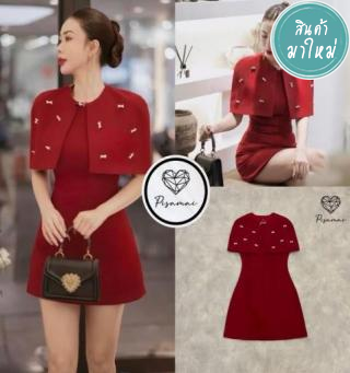 เซ็ตเดรสแขนกุดตัวสั้นสีแดง มาคูากับเสื้อคลุมทรงค้างคาวตัวสั้น