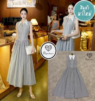 เดรสคอปกเชิ้ตตัวยาวลายทางสีดำ แต่งดีเท็ลสวยมากกกกก