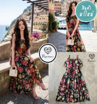 เดรสตัวยาวพื้นดำลายดอกหลากสี ใส่พริ้วๆ สวยมากกกก ใส่ฟินนาเล่มากๆค่าชุดนี้