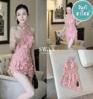 เดรสสั้นดีไซน์สุดโดดเด่นด้วยลายดอกไม้สามมิติทั้งตัว