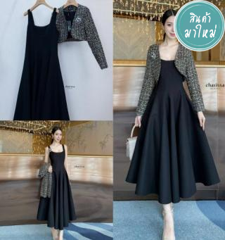 สาวๆที่กำลังหาชุดออกงาน ห้ามพลาด กับเซ็ทเดรสมาพร้อมเสื้อครอปพรีเมี่ยมทวิตและเข็มกลัดดอกไม้  [พร้อมส่ง]
