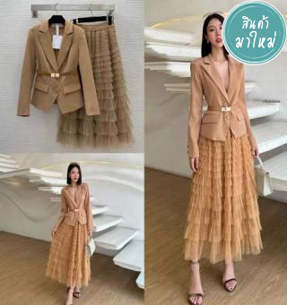 set Blazer+Skirt +เข็มขัด เสริมลุคสวยโดดเด่น ผู้ดีสุดดด เสื้อสูทกระเป๋าจริง  [พร้อมส่ง]