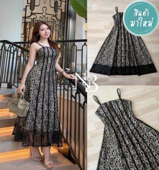 เดรสยาวสายเดี่ยว ผ้าลูกไม้ ใช้ผ้าลูกไม้อย่างดี ใส่ซับใน 2ชั้นยาวทั้งชุด