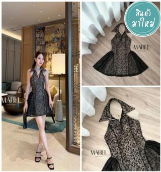 มินิเดรสคล้องคอเว้าหลัง ดีไซน์แต่งกระดุม ติดเพชรรอบอกและชายกระโปรง  [พร้อมส่ง]