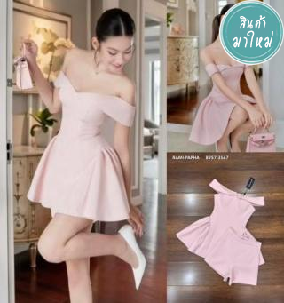 เดรสกระโปรงบานแขนสั้น ดีไซน์คอปก เรียบๆ แต่หรูหรามั๊กกก มีฟองน้ำและซับในอย่างดี