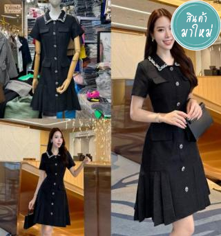 ชุดเดรสแขนสั้นผ้าพรีเมียมทวิต (Tweed Dress) ที่นุ่มมากๆ ดีไซน์พิเศษด้วยคอปกแต่งด้วย