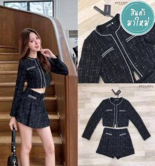 เซ็ต 2 ชิ้นสไตล์ลูกคุณ เรียบโก้ ดูแพงแบบแบรนด์ยุโรป ผ้าทวีตเนื้อแน่นทรงสวย + กางเกงกระโปรงใส่สบาย