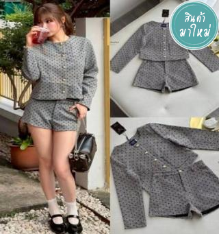Set เสื้อตัวยาวคลุมสะโพกตัวสวย ด้านหน้าแต่งซิป พร้อมแต่งอะไหล่โซ่ทองโดยรอบ