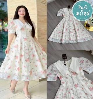 แม็กซี่เดรสตัวยาว คอปกเชิ้ต แขนสั้น ตัวเดรสเย็บเป็นทรงป้าย