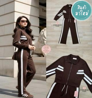 Set 2 ชิ้น เสื้อแขนยาวดีไซน์ด้านหน้าแต่งซิปและแต่งแถบด้านหน้า ปลายแขนเสื้อจั๊ม