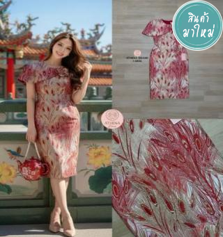 เดรสสายเดี่ยว อกเย็บโชว์ เนื้อผ้าลูกไม้นุ่มนิ่มปักเลื่อมวิ้งๆ เย็บระบายเป็นชั้นๆทั้งตัว งานซิปข้าง