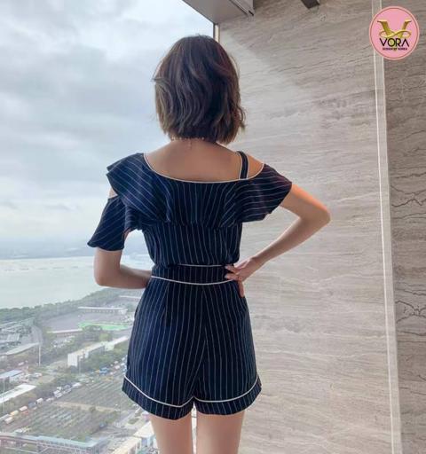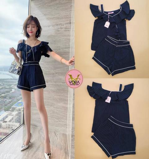 Set เสื้อระบายไหล่แต่งสาย
