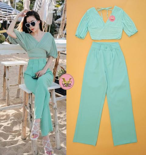 #VORA #งานป้าย #เซ็ทกางเกง #ชุดไปเที่ยว #ชุดไปทะเล #ชุดสีเขียว |