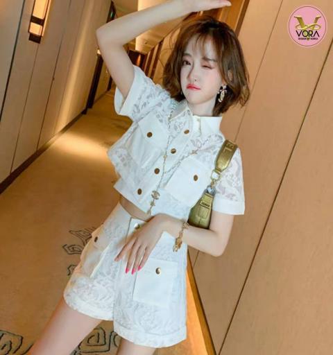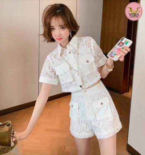 Detail :: Set เสื้อแขนสั้นคอปกแต่งกระเป๋าด้านหน้า มาพร้อมกางเกงเข้าเซ็ท เนื้อผ้าลูกไม้เนื้อดี มีซับในแยกให้คะ สามารถแยกแมทช์กับชุดอื่นได้อีกเยอะเลยค่า ต้องจัดนะค่า .. ใส่ออกมาแล้วเป๊ะเว่อร์ แพทเทรินเนี๊ยบสุดๆ สามารถใส่ได้ในทุกโอกาสเลยค่า...