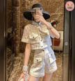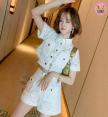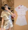 Set เสื้อแขนสั้นคอปกแต่งกระเป๋าด้านหน้า