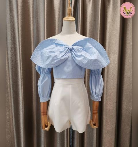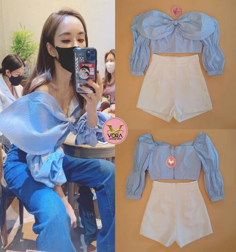 Detail :: เสื้อปาดไหล่แขนยาว ช่วงแขนจับจีบสม็อคพองๆ แต่งโบว์ใหญ่ช่วงหน้าอกเก๋มากๆคะ มาพร้อมกางเกงขาสั้นสีขาว เจาะกระเป๋าด้านข้างทั้ง2ข้าง เนื้อผ้าดีมีซับในคะ สามารถใส่แยกกับชุดอื่นได้อีกเยอะเลยคะ ต้องจัดนะค่า ... ใส่ออกมาแล้วเป๊ะเว่อร์ แพทเทรินเนี๊ยบสุดๆ สามารถใส่ได้ในทุกโอกาสเลยค่า...