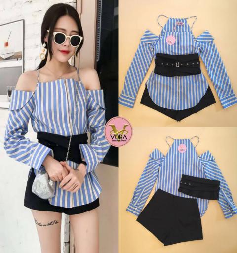 Detail :: Set เสื้อแขนยาวแต่งเปิดไหล่ มาพร้อมกางเกงขาสั้น และเข็มขัดเข้าเซ็ท แมทช์กันได้ลงตัวสุดๆค่า เนื้อผ้าดีคะ สามารถแยกแมทช์กับชุดอื่นได้อีกเยอะเลยค่า ต้องจัดนะค่า .. ใส่ออกมาแล้วเป๊ะเว่อร์ แพทเทรินเนี๊ยบสุดๆ สามารถใส่ได้ในทุกโอกาสเลยค่า...