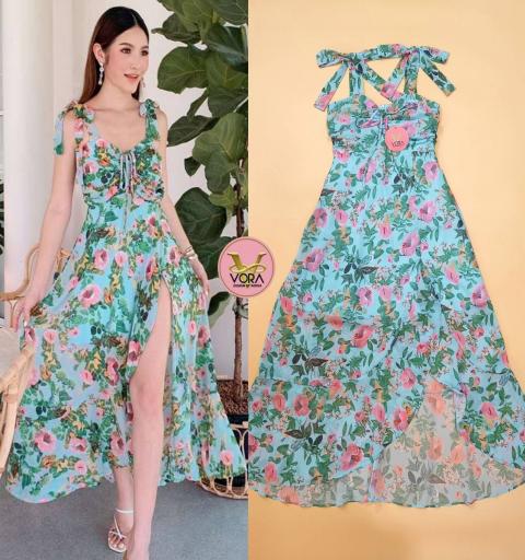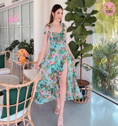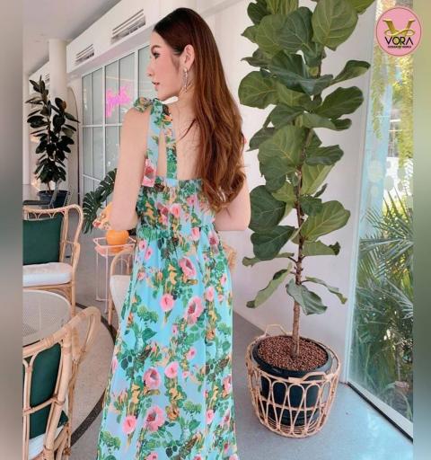#VORA #งานป้าย #เดรสยาว #ชุดไปทะเล #ชุดไปเที่ยว #ชุดลายดอก |