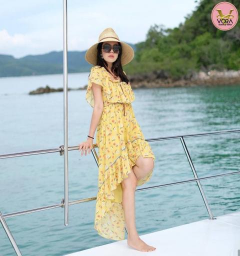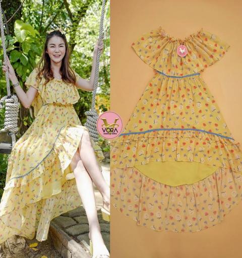#VORA #งานป้าย #เดรสยาว #ชุดไปทะเล #ชุดไปเที่ยว #ชุดลายดอก |