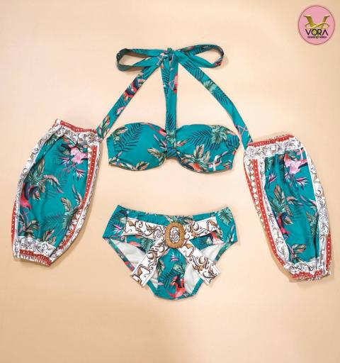 Detail : Bikini Set ชุดว่ายน้ำทูพีชสามารถใส่ได้ 2 แบบเลยค่า จะใส่คล้องคอหรือผูกหลังก็เก๋คะ แต่งสายคล้องกับกางเกงไม่ซ้ำใครคะ มีปลอกแขนเข้าเซ็ตให้ด้วยคะ เนื้อผ้าชุดว่ายน้ำยืดหยุ่นได้เยอะคะ พิมพ์ลายชัดสวยมากๆคะ ... ใส่ออกมาแล้วเป๊ะเว่อร์ แพทเทรินเนี๊ยบสุดๆค่า