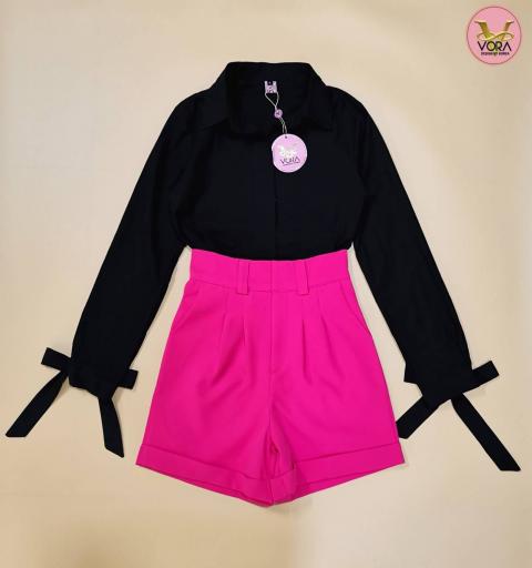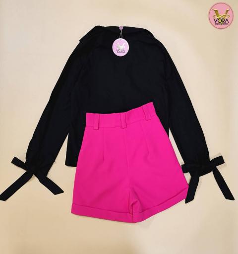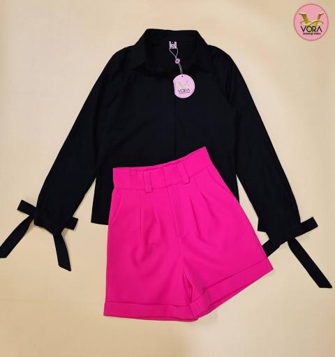 Set เสื้อเชิ้ตแต่งผูกโบว์ปลายแขน
