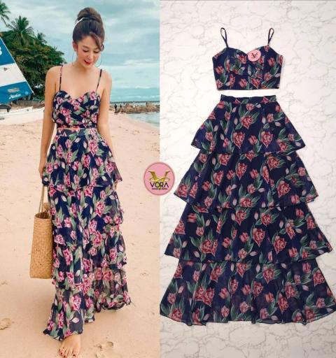 #VORA #งานป้าย #ชุดลายดอก #เดรสยาวลายดอก #ชุดไปทะเล #ชุดเซ็ท