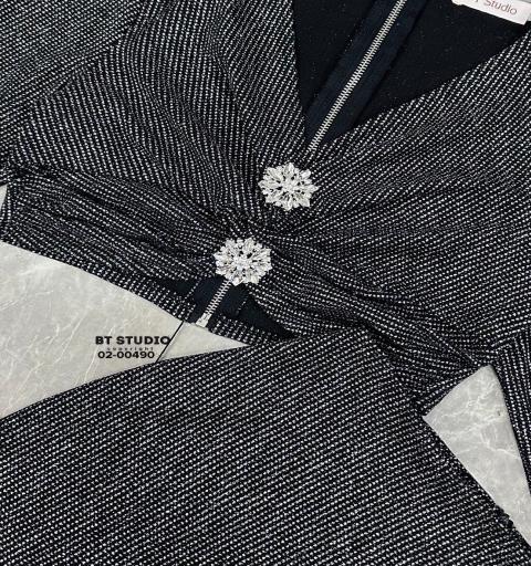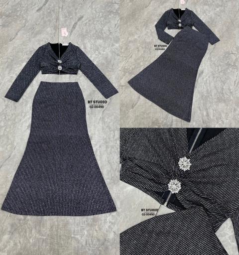 DETAIL : เซท 2 ชิ้น เสื้อครอปตัวสั้นแขนยาวคอวี ด้านหน้าแต่งจับจีบเป็นย่นๆ ช่วงอกให้เข้ารูป มาพร้อมกระดุมเพชรเม็ดโตสองเม็ดเรียงกลางอก ซิปหลัง แมทซ์กับกระโปรงยาวแต่งชายระบายหางปลา ซิปหลัง งานทั้งสองชิ้นเนื้อผ้าแต่งกริตเตอร์ทั้งตัว เล่นแสงสุดๆ เนื้อผ้ายืดหยุ่นได้ตามตัว งานสวย ทรงเป๊ะ