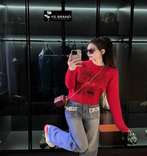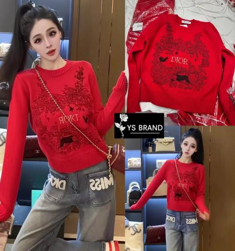 เสื้อไหมพรมแขนยาว ปักลวดลายDiorด้านหน้า