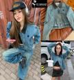 เสื้อคลุมยีนส์แขนยาว เย็บคอปก หนังสีดำ ผ้ายีนส์เนื้ออย่างดี