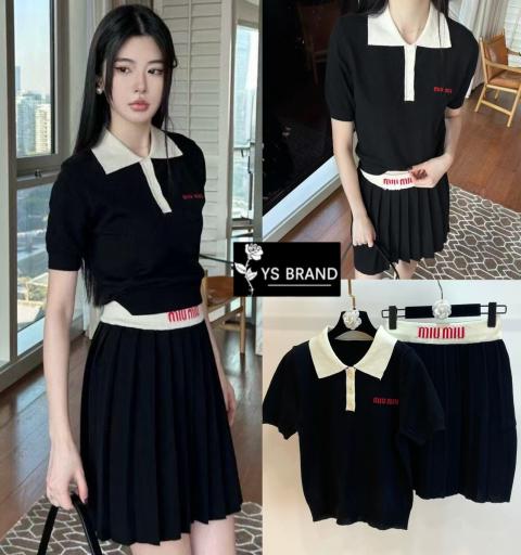 Brand: miu miu Detail :Setสุดคุ้ม ชุดSetไหมพรมแขนสั้น คอปก เย็บกระดุมคอ ผ้าไหมพรมเนื้ออย่างดี ผ้าดีมากๆ ทอลาย miu miuที่อก และช่วงเอว มาพร้อมกระโปรงเข้าชุด ช่วงเอวยืดได้เยอะ สวยโดดเด่นมากๆ ซื้อ1ได้ถึง2 มาพร้อมป้ายคอ miu miu Tagครบสวยมาก งานคุณภาพ ห้ามพลาด จัดเลยจ้า