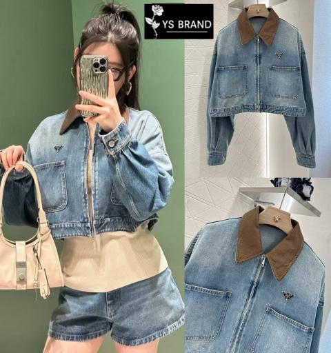 Brand: Prada Detail :เสื้อคลุมยีนส์แขนยาว เย็บคอปก หนังสีน้ำตาล ผ้ายีนส์เนื้ออย่างดี ผ้าดีมากๆ เย็บซิบด้านหน้า เย็บกระเป๋าหน้า 2ข้าง เย็บป้าบPrada ช่วงอก สวยโดดเด่นสุดๆ ใส่ทำงานได้เที่ยวได้ มาพร้อมป้าย Tag Prada ครบสวยมาก งานคุณภาพ ห้ามพลาด จัดเลยจ้า