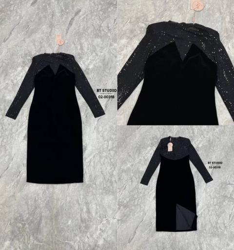 เดรสยาวแขนยาว เนื้อผ้าช่วงอกถึงปลายแขนแต่งกริตเตอร์ระยิบ ๆ