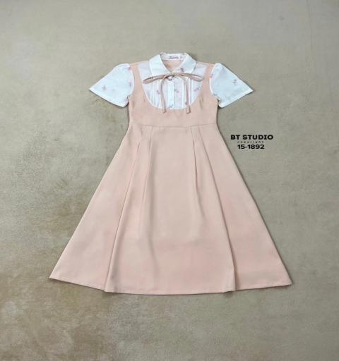 DETAIL : ชุดเดรสดีเทลแต่งต่อ คอปกสีขาวแต่งจับจีบกลางอกทั้งสองข้างพิมพ์ลายดอกไม้ แต่งผ้าสีส้มออกพีชแต่งเป็นเอี้ยมกระโปรงงานสวยเนื้อผ้าดีมีซับในค่ะ