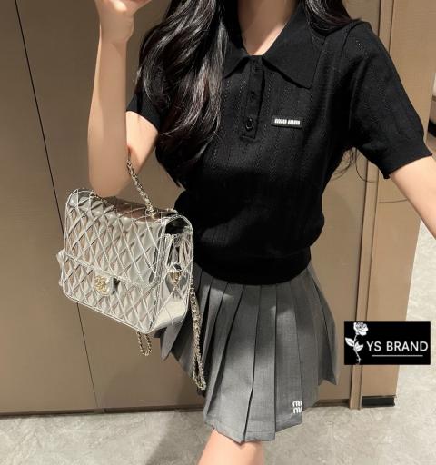 Brand: miu miu Detail เสื้อไหมพรมทรงแขนสั้น แต่ง:คอปก เย็บกระดุมคอ เย็บป้ายmiu miuช่วงอก ผ้าไหมพรมเนื้ออย่างดี ผ้าดีมากๆ ยืดได้เยอะ สวยโดดเด่นมากๆ แมทได้เยอะ มาพร้อมป้ายคอ miu miu Tagครบงานคุณภาพ ห้ามพลาด จัดเลยจ้า