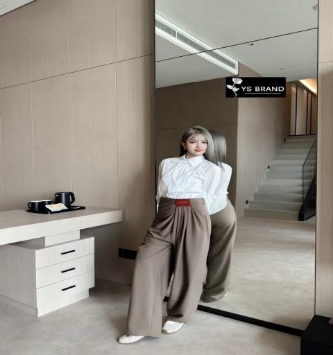 กางเกงผ้าสูทขายาวเอวสูง ผ้าเนื้ออย่างดี